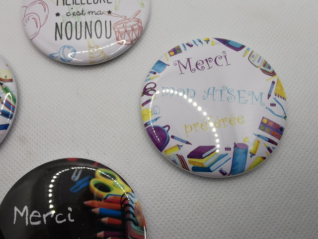 Ces badges mesurent 56 mm de diamètre et se décline en 4 modèles: